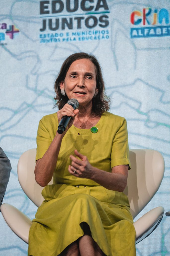 “A primeira mesa da manhã hoje foi superinteressante. Ela nos provoca a pensar que não dá pra falar alfabetização de todas as crianças de uma forma única. Existem necessidades especiais, demandas específicas. Crianças negras, crianças indígenas, crianças de comunidades rurais, quilombolas, crianças com deficiência. Acho que o alerta que vem do debate de hoje é que se a gente de fato quer alcançar todas as crianças, a gente não pode ter uma solução única porque ela não funciona para esses diferentes contextos.”